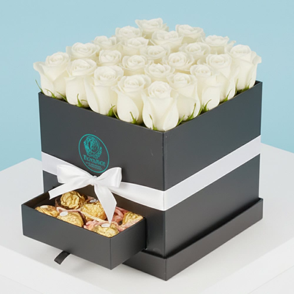 A Beautiful White Rose Box Arrangement with